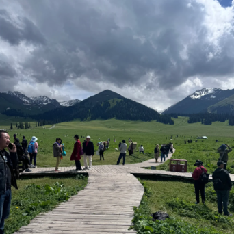景色一般:之前去了喀拉峻、恰西、库尔德宁,一来到那拉提最热门的空中草原,我的沉默震耳欲聋。除了有明显的溪流,其他的都比不上另外的草原。阴天的网红桥背景好像臭水沟,网红桥下面平坦的草地也好像野菜地,下午好不容易出了太阳,但就算是晴天景色也没有很惊艳,人多扎堆拍照也不够尽兴,来都来了,只能勉强找点角度打个卡走人。